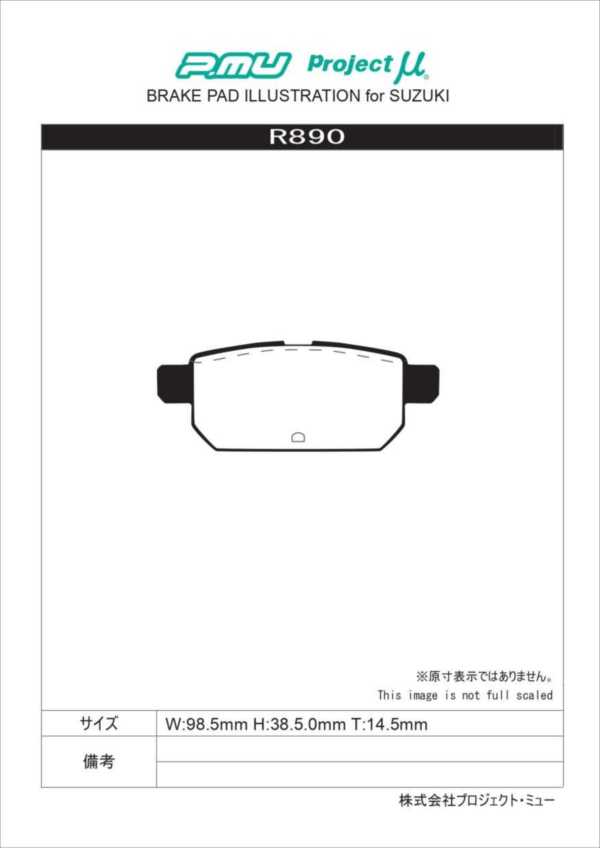 R890 Projectμ B SPEC リア ブレーキパッド(左右) SX-4 S-CROSS YA22/YB22S 15/02〜 (プロジェクトミュー)